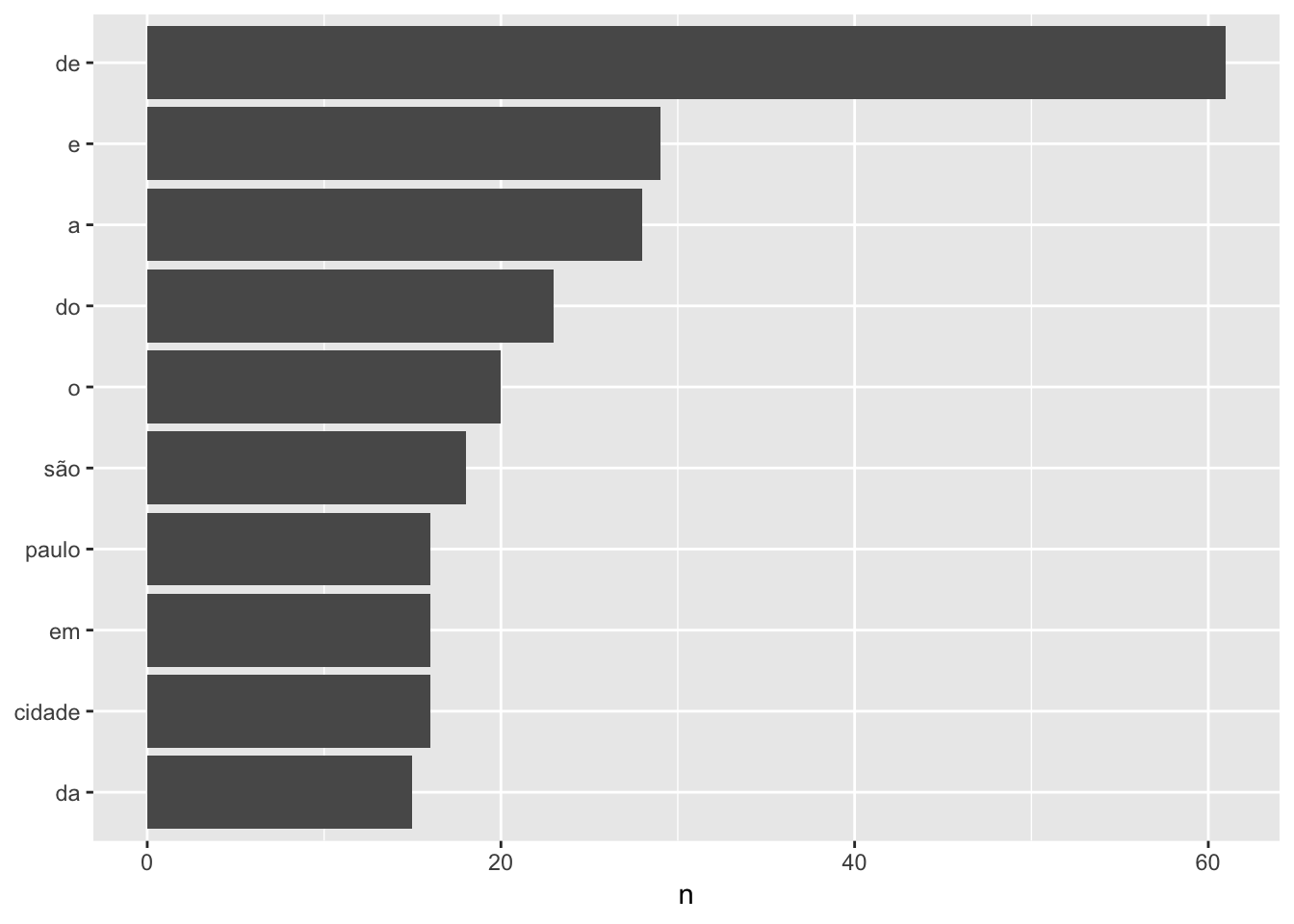 Agora que já sabemos como transformar nossos dados de texto em um formato tidytext, podemos começar a fazer alguns cálculos de frequência e entender mais sobre os textos. Para tornar esta análise mais interessante, vou copiar e colar um longo texto da Wikipedia sobre a economia da cidade de São Paulo, desta forma teremos mais material para trabalhar: